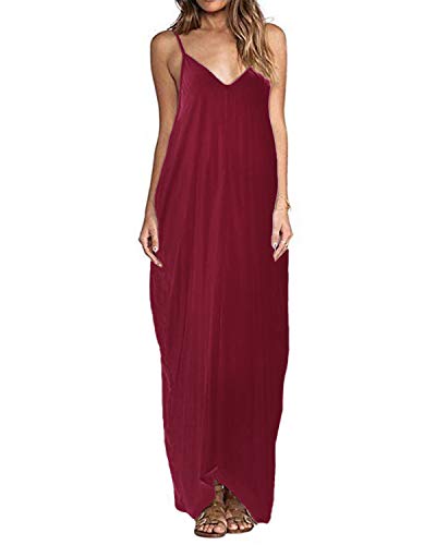❤Zanzea robe longue robe de plage maxi robe robe ete Boho Sexy Femme sans Manches Col V Lâce Robe Longue Maxi à Bretelle de Plage Party Cocktail