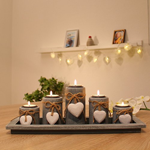 Dszapaci Décorations Maison pour Salon Ensemble de Porte-Bougies Tea Light Décor de Table en Bois