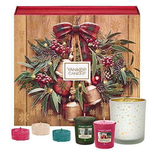| Title | Coffret cadeau Yankee Candle en forme de calendrier de l'Avent et comportant 12 bougies votives parfumées, 12 bougies chauffe-plat parfumées et 1 photophore en verre, emballage festif avec couronne |