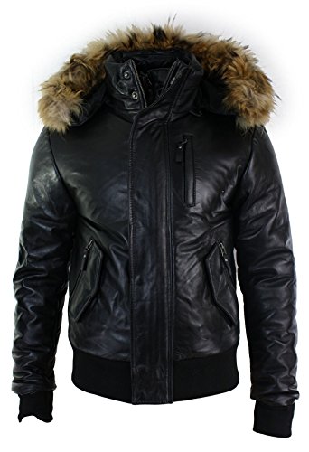 | Title | Blouson aviateur Hommes Cuir véritable Capuche Fourrure Timber Noir Court Duvet rembourré |